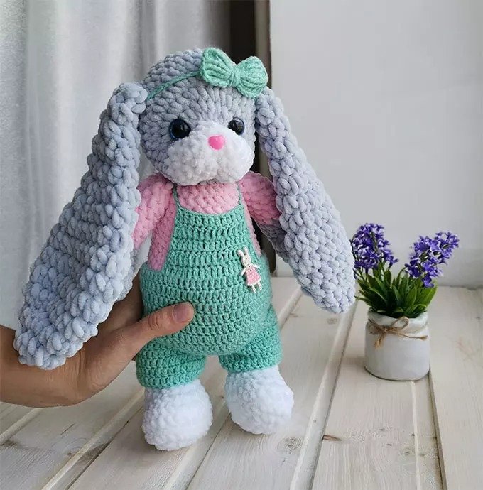 Crochet the first ear with white yarn in rows: