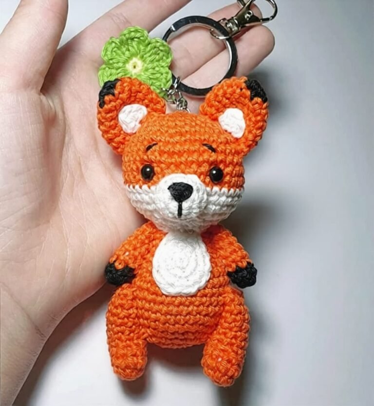 7. Sew the tail: Attach the tail to the back of the body, approximately at rows 5–6.
