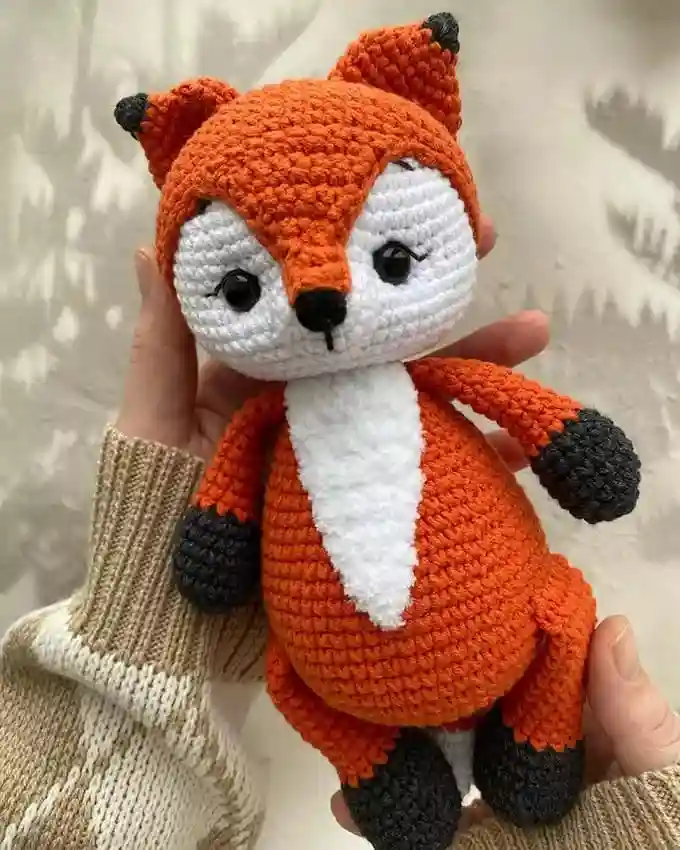 With this pattern, you can crochet an adorable plush tiger cub with a fluffy muzzle and inner ears. Perfect for beginners and experienced crocheters, this tiger is made using soft, plush yarn and features sewn or crocheted limbs. The design includes safety eyes and a nose, along with embroidered details like eyebrows and a mouth.