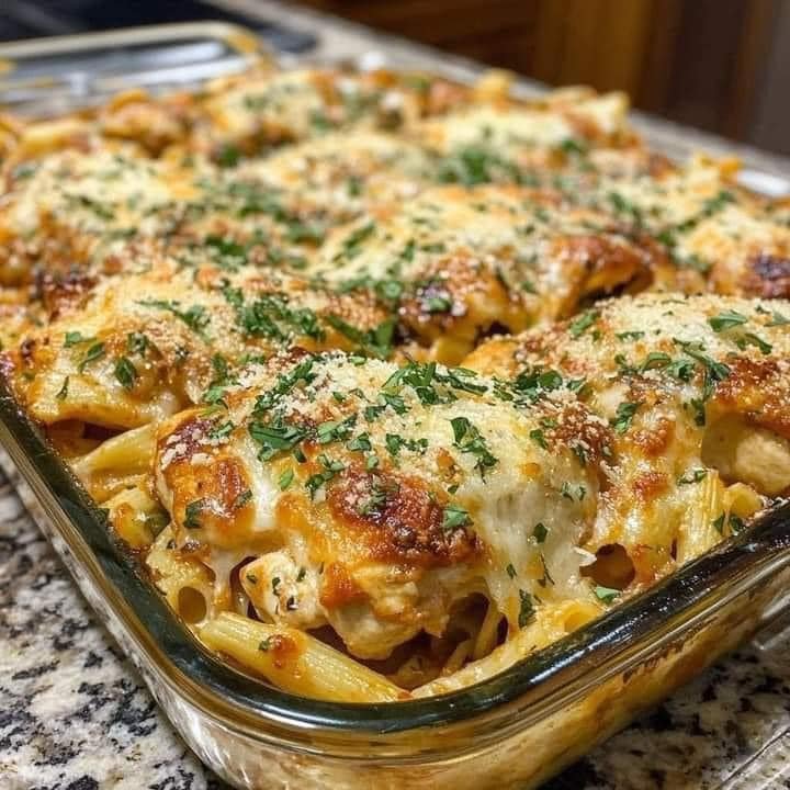 This Cheesy Garlic Parmesan Chicken Pasta Bake is creamy, rich, and loaded with comforting flavors! Perfect for a family dinner or a cozy gathering.