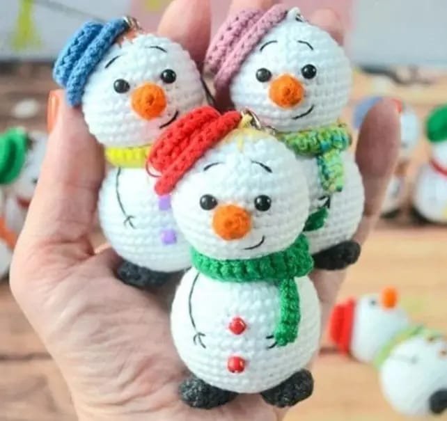 Are you thinking of crochet keychain ideas and can’t find them? Here is a crochet keychain snowman that will be a great alternative. This cute free crochet snowman pattern will measure 7 cm when completed. You can make a beautiful and stylish crocheted keychain for your friends during Christmas time, and it could make a lovely Christmas gift. You can also use it as a Christmas tree decoration. For this snowman, the designer used Alize Cotton Gold yarn and a 2mm crochet hook. The head and body are crocheted as one piece, and the remaining parts are assembled. This free amigurumi pattern includes instructions for a stylish hat and scarf to decorate your snowman.