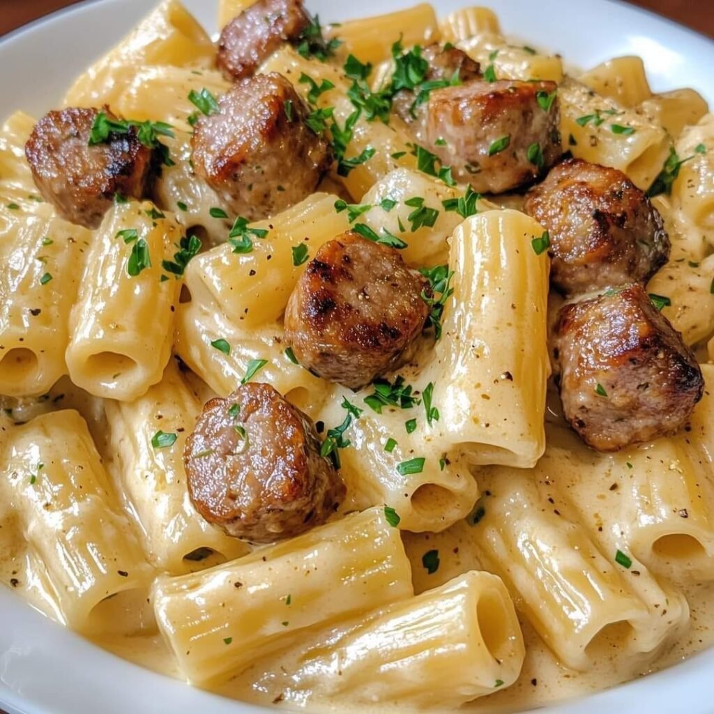 This creamy Garlic Sausage Alfredo Rigatoni is indulgent and packed with flavor, making it a family favorite!