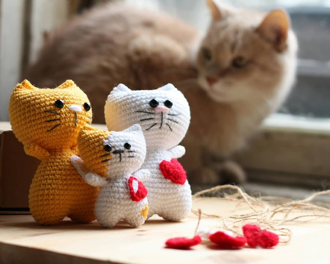 - If desired, sew on a small heart-shaped piece of felt or crocheted heart to the chest of your kitty for an extra touch of cuteness.
