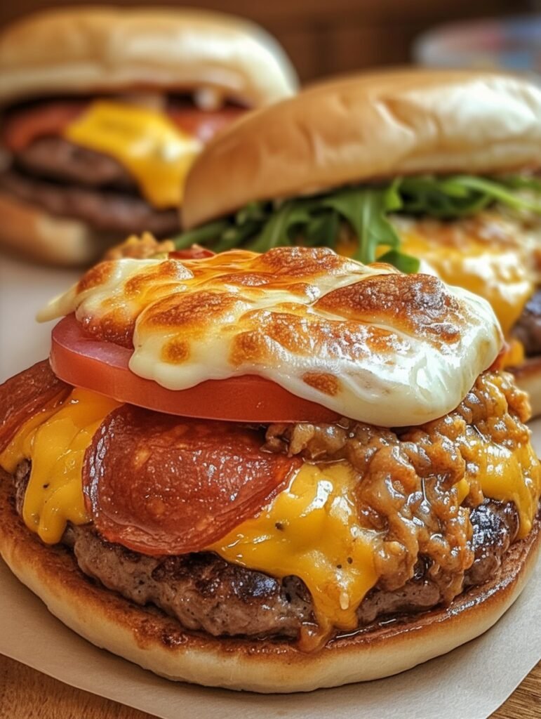 Complete the Burgers: Place a grilled patty on top of each prepared bottom half. Then, layer with the remaining pizza sauce, mozzarella cheese, and pepperoni slices.